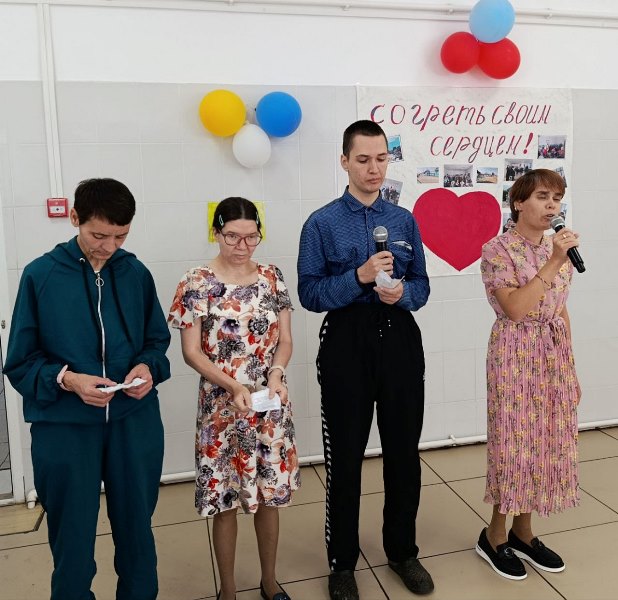 В честь Дня пожилого человека в учреждении проведено праздничное мероприятие «Согреть своим сердцем». Перед проживающими учреждения с поздравительной речью выступил директор интерната Савельев И. К. Участники художественной самодеятельности исполнили свои концертные номера. По ходу концерта проживающие участвовали в различных конкурсах, в которых пожилые люди показали свои жизненную активность, бодрость, оптимизм, подтверждая, что возраст измеряется не годами, а состоянием души, а душа у них - молодая, задорная и красивая!